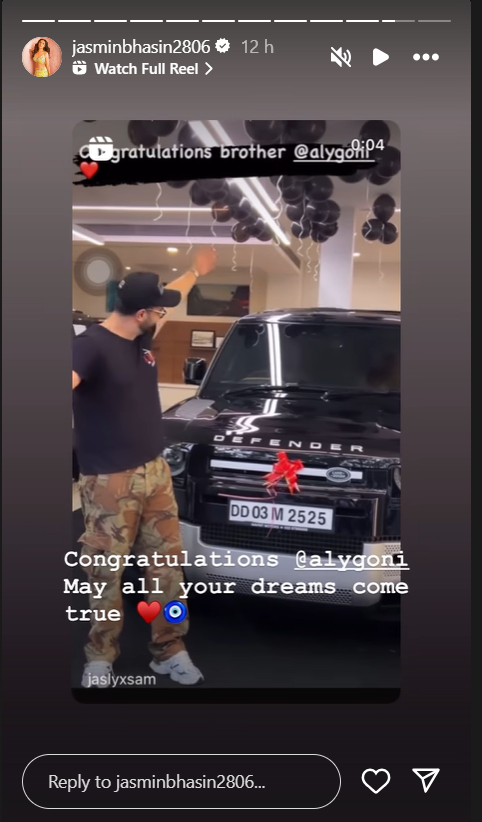 Jasmin Bhasin later shared a video of Aly Goni unveiling the car on Instagram Stories. Along with the clip, she wrote, “Congratulations Aly Goni. May all your dreams come true.”